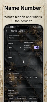 Unutar Astera Oracle & Numerology pronaći ćete sveobuhvatan sustav za introspekciju. Započnite dan s "Dnevnom proročanskom kartom" koja donosi umirujuću poruku, energiju i intuitivno vodstvo. Detaljna viktorijanska proročanska čitanja, s 36 predivnih karata, nude brze i lako razumljive interpretacije za pitanja poput ljubavi i odnosa, namjera partnera, financija i karijere, te dilema "što trebam učiniti?" ili "zašto se ovo događa?". Svako čitanje je brzo, ciljano na jasnoću i oslobođeno negativnosti. Pored toga, numerološka analiza vašeg imena i datuma rođenja otkrit će Broj Životnog Puta, Broj Imena, Karmičke Lekcije, Psihomatriks i prognozu za Osobnu Godinu, pružajući duboke uvide u vašu osobnost i životne lekcije. Posebno jedinstven je "Salon Sudbine" koji kombinira proročanstvo s vašim numerološkim profilom za potpunu sliku vaše situacije i sljedećih koraka.