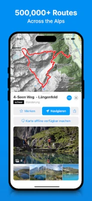 Iskoristite napredne kartografske mogućnosti s detaljnim kartama temeljenim na OpenStreetMap podacima, redovito ažuriranima za cijelu europsku alpsku regiju. Iskušajte bogatstvo PRO funkcija besplatno tijekom 7 dana bez obveza! Doživite značajke poput identifikacije okolnih vrhova, pristup tisućama web kamera, zapanjujuće 3D karte koje vjerno prikazuju teren, službena upozorenja o lavinama i signal upozorenja pri napuštanju rute. Uživajte u detaljnim službenim kartama, offline pristupu kartama za navigaciju bez internetske veze te satelitskim prikazima, sve bez reklama.