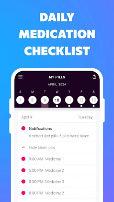 Prestanite brinuti o propuštenim dozama ili pogrešnom rasporedu. S ovom aplikacijom za upravljanje lijekovima, preuzimate potpunu kontrolu nad svojom terapijom. Osigurava da ćete uvijek uzeti pravi lijek, u točnoj dozi i u precizno određeno vrijeme. Jednostavno primite obavijest kada je vrijeme, uzmite lijek na vrijeme i vodite detaljan dnevnik povijesti uzimanja svih vaših lijekova. Ova aplikacija ne samo da podsjeća, već i bilježi svaki korak, pružajući vam potpuni pregled i mir uma.