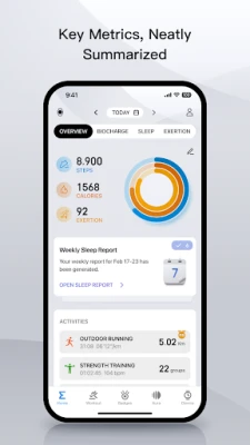 Zaboravite na nagađanja o unosu kalorija. Zepp App omogućuje da jednostavno fotografirate svoj obrok i trenutačno dobijete detaljne podatke o kalorijama, težini i makronutrijentima. Idealno za sportaše koji pažljivo balansiraju prehranu s intenzivnim treningom, bilježite neograničen broj obroka ili ih unosite ručno. Nadalje, Zepp App pažljivo prati vaše vitalne zdravstvene pokazatelje: puls, san, razinu stresa i zasićenost krvi kisikom. Detaljno evidentira dnevne aktivnosti poput koraka i potrošenih kalorija, kao i napredne podatke o treningu, uključujući tempo, udaljenost, brzinu, zapise o snazi i dragocjene uvide u oporavak. Precizno praćenje spavanja, s analizom faza i kvalitete, te sveobuhvatan prikaz srčanog zdravlja s podacima o HRV-u i RHR-u, osiguravaju potpunu sliku vašeg fizičkog stanja.